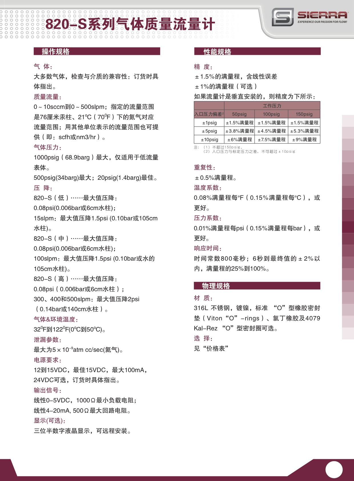 Sierra儀表的820-S型Top-Trak產品是針對0~10sccm到0~500slpm 范圍內的過程氣體的精確測量而設計。 因為所有材料均為316L不銹鋼,所以適合于大多數清潔氣體包括腐蝕氣體的測量。